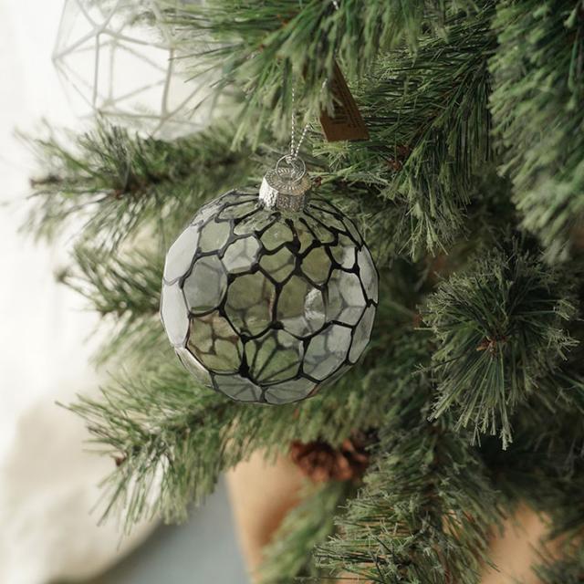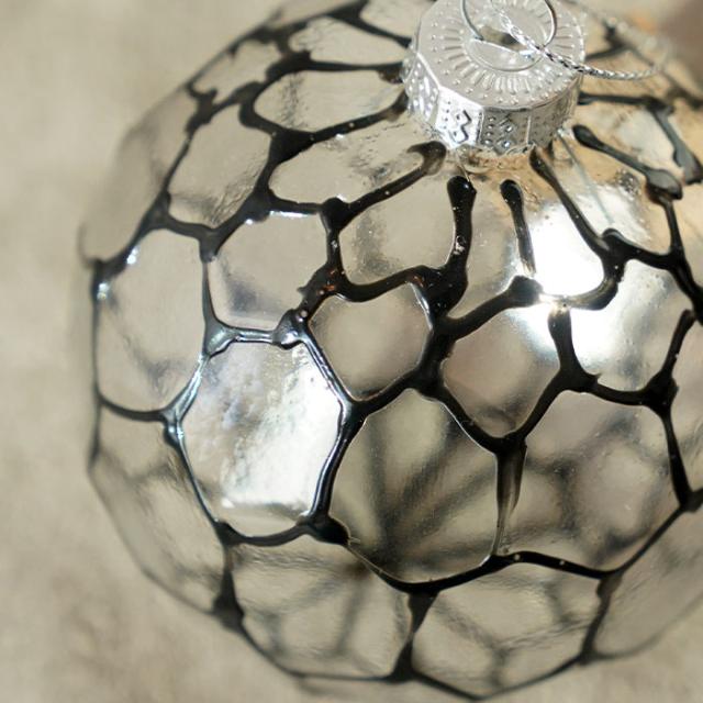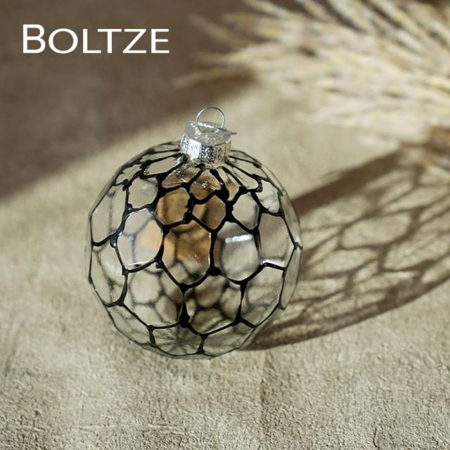 クリスマス ツリー 飾り オーナメント BOLTZE ガラスボール メリン 幾何学模様 1個入 [3] 8cm ブラック ハニカム柄[2023473]