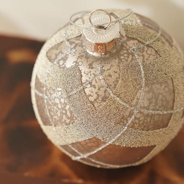 クリスマス ツリー オーナメント ドイツ BOLTZE ガラスボール 1個入 [6] 8cm シルバーベージュ アーガイル[2023536]