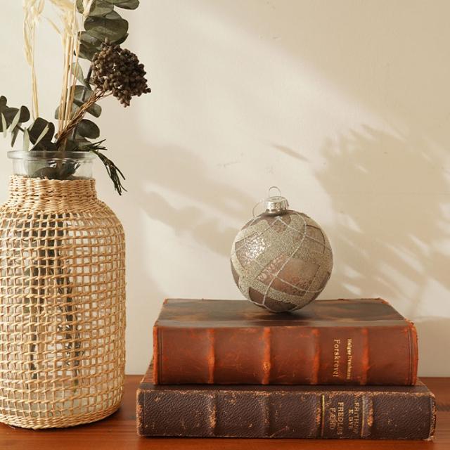 落ち着きのあるベージュカラーがパッと目を引くガラスオーナメントです。