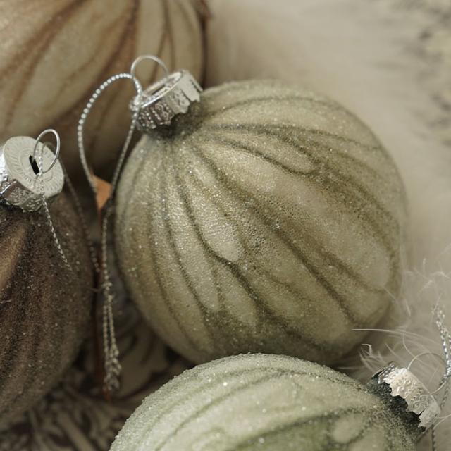 クリスマス ツリー オーナメント ドイツ BOLTZE ガラスボール 波 マーブル模様 1個入 [1] 8cm ベージュグリーン[2024437]