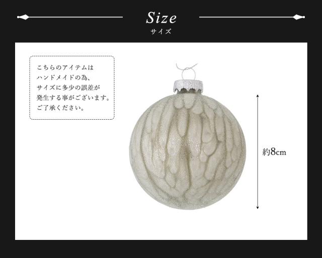 | ★繊細な波模様の絵付けが美しいガラスボールオーナメントです。 何よりも特徴的なのがこの美しい見た目。計算し尽くされた淡く美しい色調と、絵具を流し込んだような流線の絵付けがとても印象的です。この柔らかさのある繊細なタッチはハンドメイドだからこそ表現できるもの。シンプルな中に個性が光る、お洒落なオーナメントです。 淡い色味で洗練されたデザインなので、シンプルインテリアが好きな方におすすめのアイテムです。 オーナメントは職人の手によって一つひとつ丁寧に作られたハンドメイド作品です。 クリスマスツリーに飾るのはもちろん、玄関先やシェルフに置いて飾ったり天井から吊るしたりと、楽しみ方の幅が広がるオーナメントです。 クリスマスシーズンだけでなく普段使いのインテリアとしても使える優秀なアイテムです。 標準サイズの8cmボールです。 |