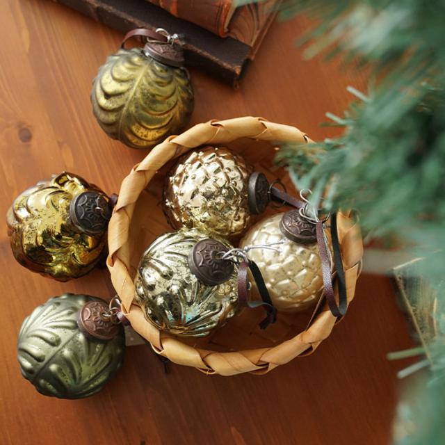 | ★クラシカルなデザインが魅力のガラスボールオーナメントです。 使い込んだかのような味わい深いアンティーク調の色や質感が印象的です。ガラス表面の独特な模様が深みのある個性的な表情を更に引き出します。重厚感のある光沢と質感がとてもお洒落です。 レトロな雰囲気も感じられ、上品で落ち着いた空間を演出するオーナメントです。 オーナメントは職人の手によって一つひとつ丁寧に作られたハンドメイド作品です。 クリスマスツリーに飾るのはもちろん、玄関先やシェルフに置いて飾ったり天井から吊るしたりと、楽しみ方の幅が広がるオーナメントです。 クリスマスシーズンだけでなく普段使いのインテリアとしても使える優秀なアイテムです。 標準サイズの7cmボールです。 |