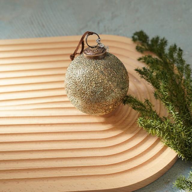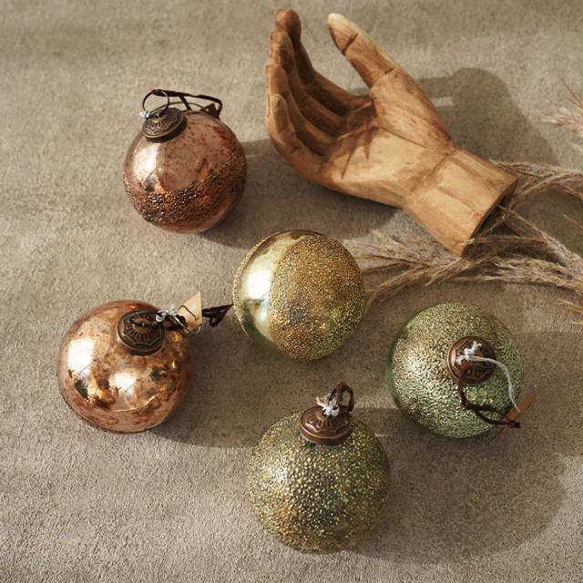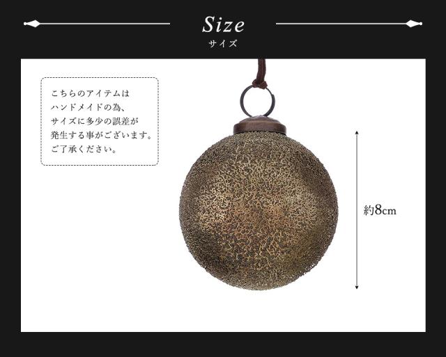 錆加工の美しさが際立つガラスボールオーナメントです。