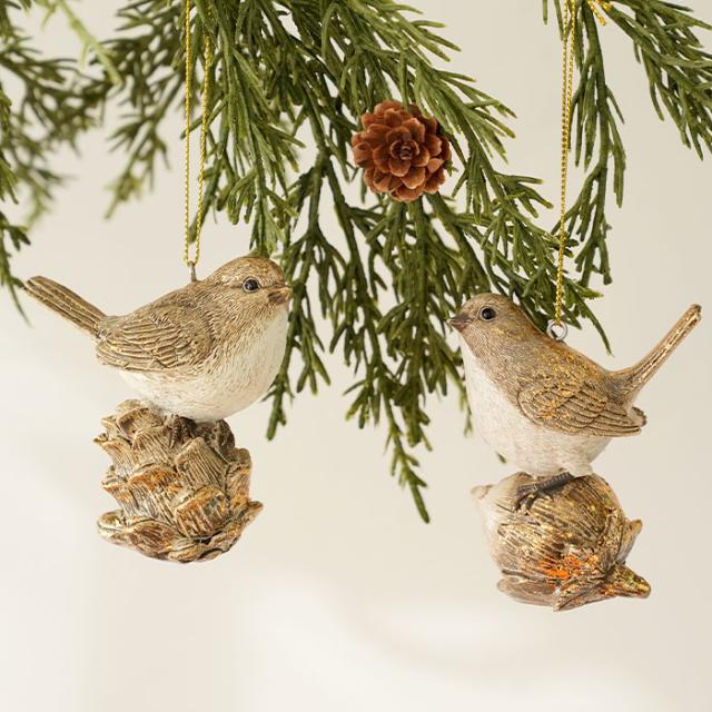 クリスマスツリー 飾り付け オーナメント 北欧 SHISHI レトロ ブロンズバード バードオンコーンギルディングミックス 松ぼっくり[58962]