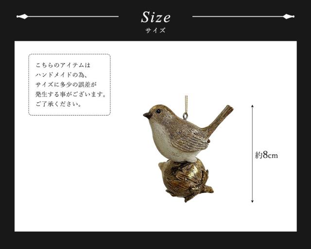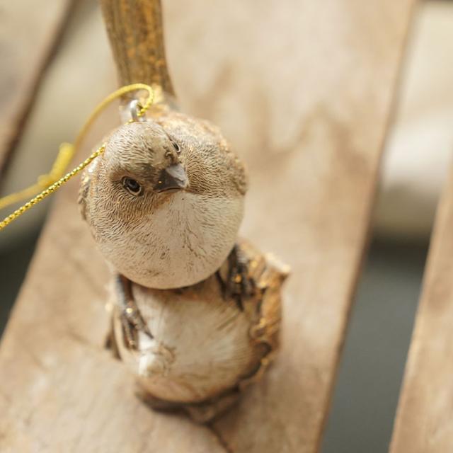 | ★木の実の上にとまり静かに羽を休める小鳥。大きくてまん丸の黒い瞳がとても印象的です。 可愛らしいイメージが強い動物モチーフのオーナメントですが、シックな色味にすることで落ち着きのある大人っぽい雰囲気に仕上げています。 どこか懐かしさも感じられるオーナメントです。 季節を問わないデザインなので、クリスマスシーズン以外でも日常のインテリアとしてお楽しみいただけます。 サイズは高さが約8cmです。 |