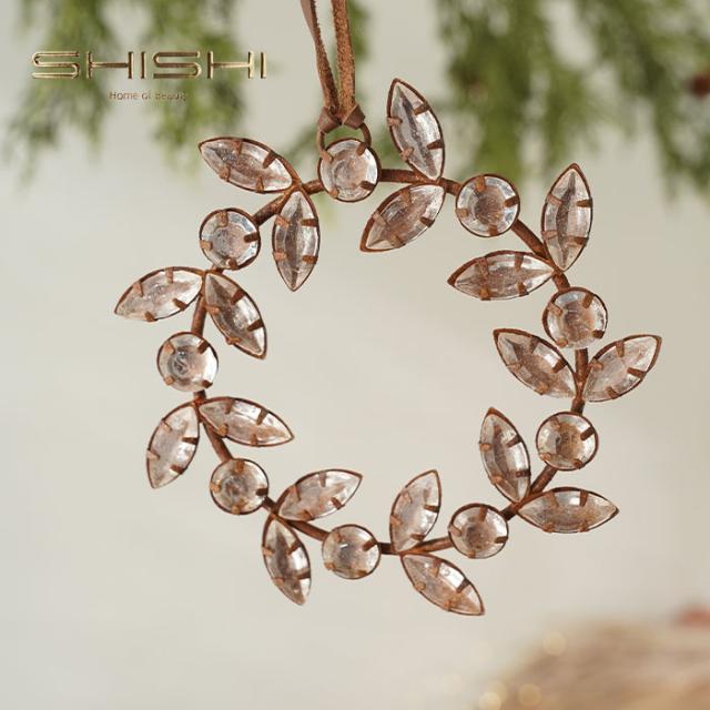 クリスマスツリー 飾り付け オーナメント 北欧 SHISHI レトロ リーフハンガー ラインストーンリース 飾り付け アンティーク[59792]
