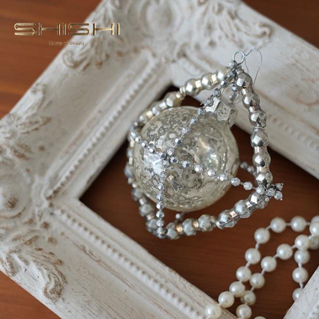 クリスマスツリー 飾り付け オーナメント 北欧 SHISHI レトロ ガレット デコレーション ガラスボール シルバー[57088]