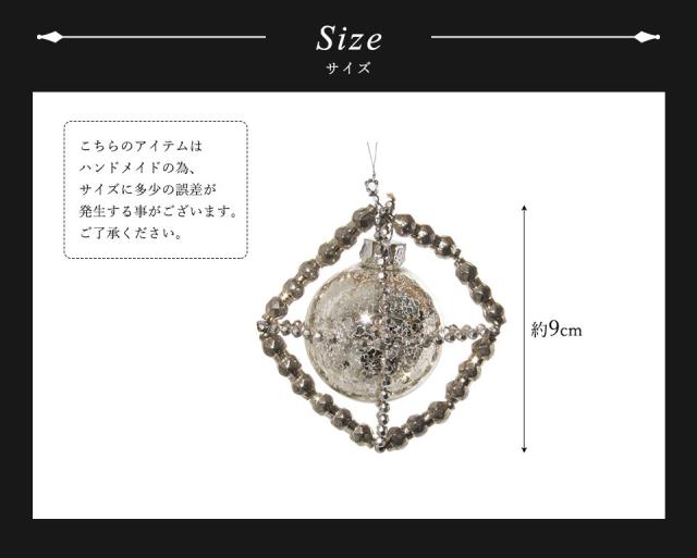 ★どこかアンティークな雰囲気が漂うボールオーナメント。 中央にある罅(ひび)模様のガラス玉がゆらゆらと優しく揺れるのが特徴です。シンプルかつおしゃれなデザインなので、クリスマスツリーに飾ると程よい存在感を放ちます。 シックで洗練された空間を演出してくれるオーナメントです。 季節を問わないデザインなので、クリスマスシーズン以外でも日常のインテリアとしてお楽しみいただけます。 大きめサイズの9cmボールです。 |