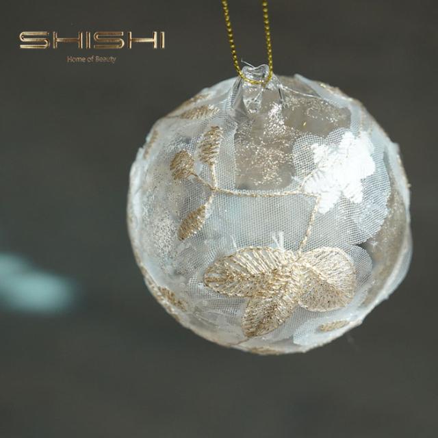 クリスマスツリー 飾り付け オーナメント 北欧 SHISHI ガラスボール クリームゴールド レース[59136]