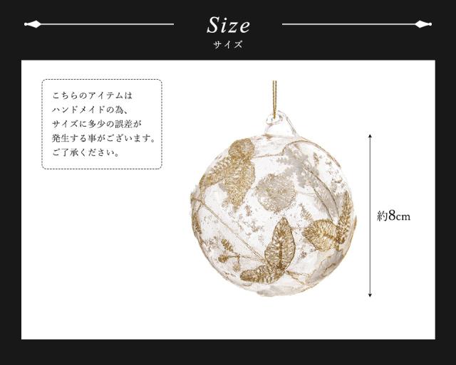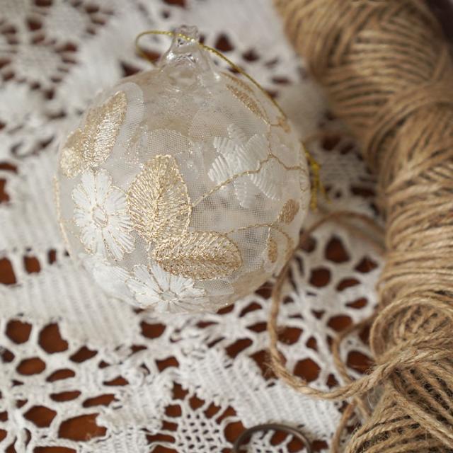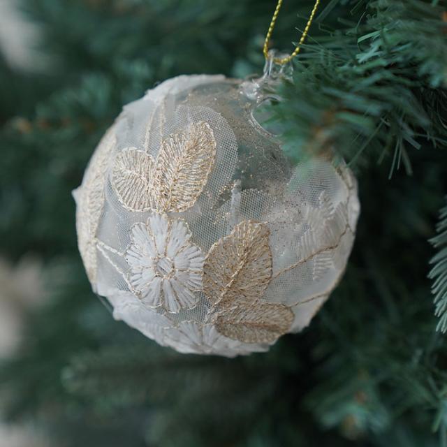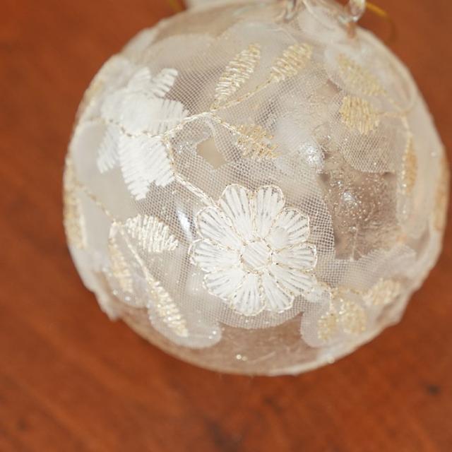 透明感のあるガラスボールにレースを装飾したエレガントなオーナメント
