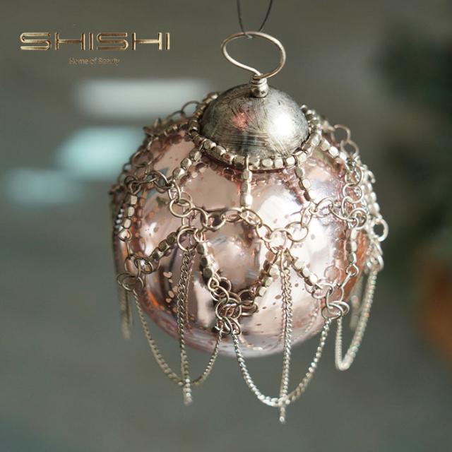 クリスマスツリー 飾り付け オーナメント 北欧 SHISHI ガラスボール アンティーク ピンクシルバー チェーンデコ[59347]