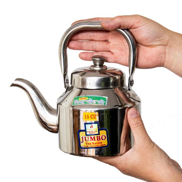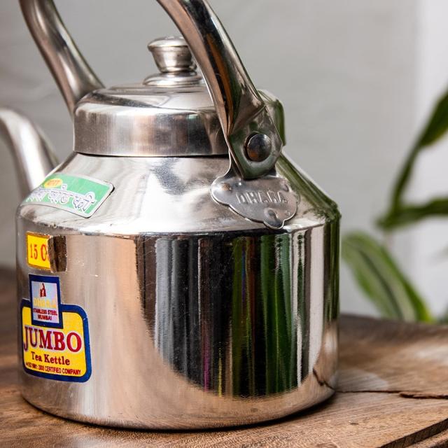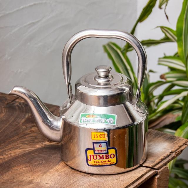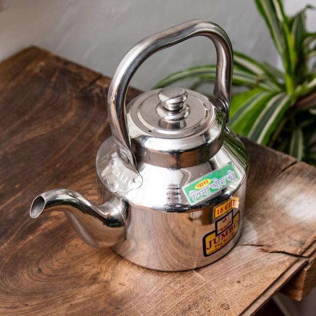 【チャイ15杯分くらい】レトロケトル インドのやかん 1200cc程度 / やかん、ヤカン、薬罐、チャイ、ケトル、インド、ステンレス、レトロ、現地仕様、小型、家庭用、耐久性、砂糖、スパイス、文化 インド アジアの食材 【インドとアジアン食品・食材