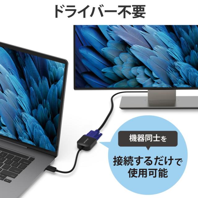 ■※VGA(D-sub15pin)コネクターからUSB Type-C(TM)コネクターへの変換はできません。※音声出力には対応していません。※映像が正しく表示されない場合は、接続先のディスプレイの電源ON/OFFや各接続コネクターの抜き差しをお試しください。※環境、機器により正常に動作しない場合があります。※すべての機器での動作を保証するものではありません。※本製品で映像出力を行う際は、出力機器がDisplayPort Alt Mode対応であることをご確認ください。