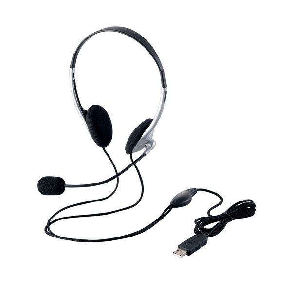 HS-FBE01USV USBヘッドセットマイクロフォン 両耳オーバーヘッド 1.8m シルバー ELECOM