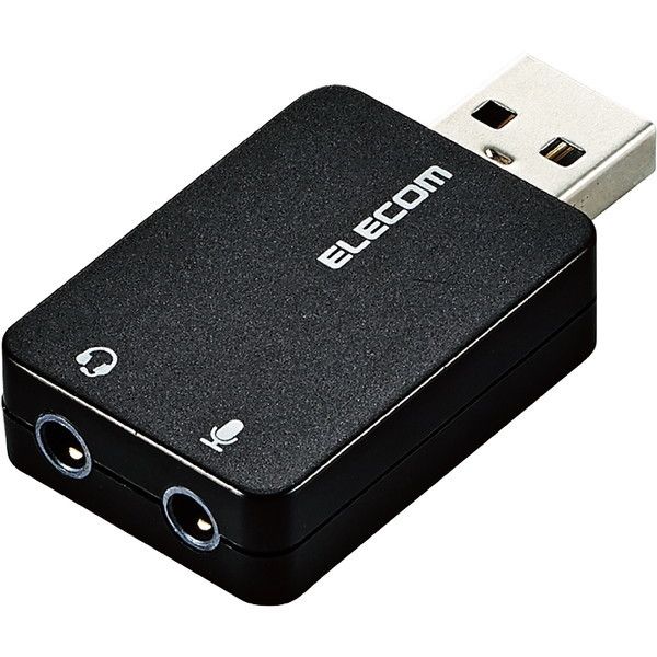 ELECOM USB-AADC01BK オーディオ変換アダプタ USB-φ3.5mm オーディオ出力 マイク入力 直挿し コンパクト ブラック