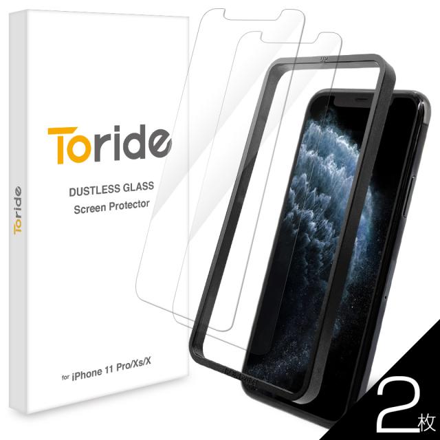 【送料無料】Web限定 Toride ホコリが入らない iPhone 11Pro Xs X用 ガラスフィルム 2枚入り 平面保護 クリア DUSTLESS加工 10H 0.33mm 貼付けガイド トリデ TR003IP11PGL