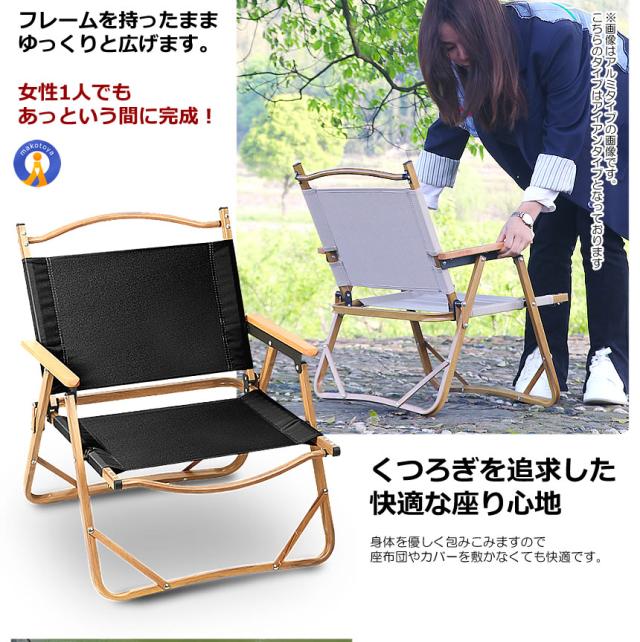 アウトドア チェア 軽量 アイアン素材 1人用 折りたたみ キャンプ チェア キャンピング チェア 組立不要 木目 ローチェア キャンプ アウトドア 活躍 人気 防水 IRONCHH