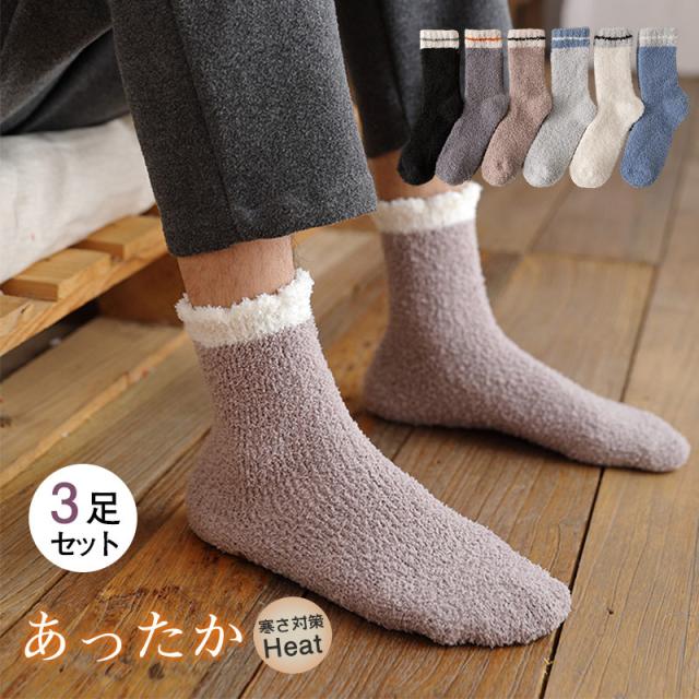 靴下 ソックス 暖かい メンズ 防寒靴下 3足ゼット 裏起毛 滑り止め 汗吸収 シンプル おしゃれ