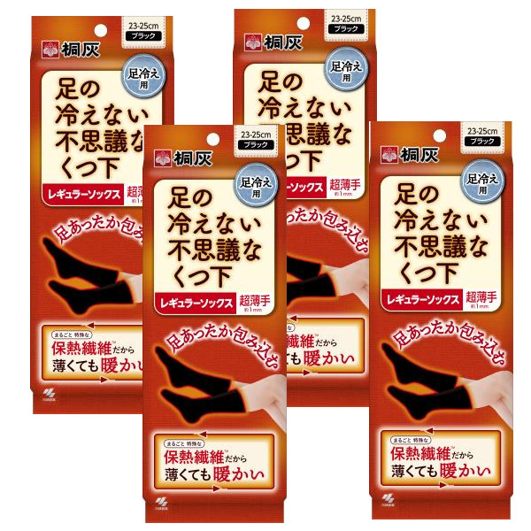 足の冷えない不思議なくつ下 レギュラーソックス 超薄手 ブラック 23-25cm ×4【4個セット】【ネコポス】桐灰 冷え 靴下 あったか