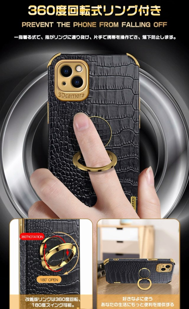 360度回転式リング付き:一指着る式で、指がリングに通り抜け、片手で携帯を操作でき、落下防止します。