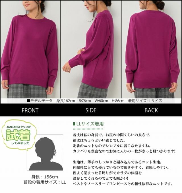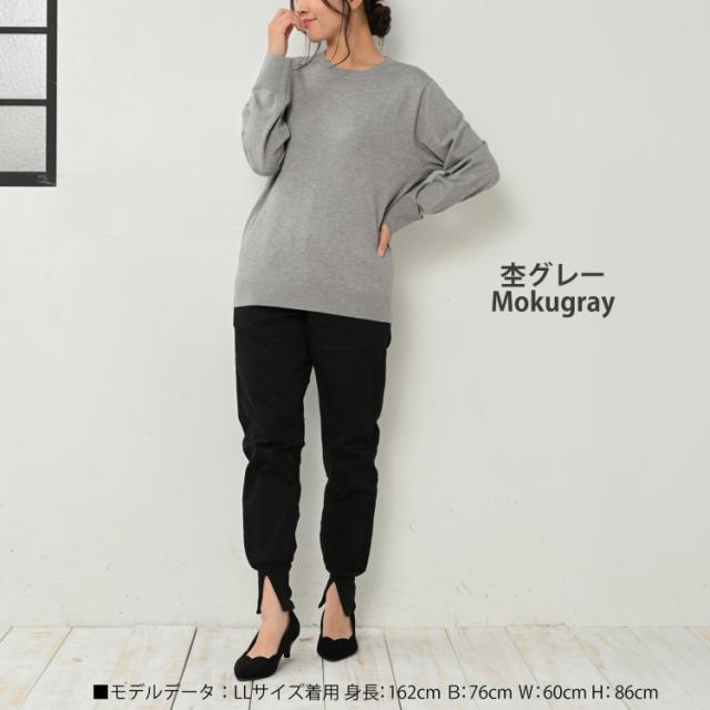 大きいサイズ レディース ニットプルオーバー 長袖 メール便対応 ベーシック クルーネック ニットソー トップス LL/3L/4L/5L ゆったりサイズ ぽっちゃり女子 プラスサイズ