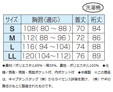 ●仕様/両側・両胸・両脇ポケット付、内ポケット付