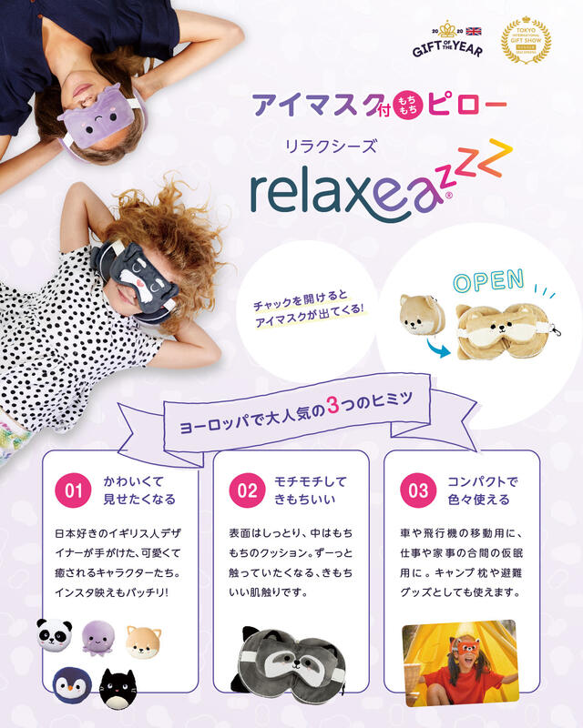 アイマスク×ピロー(まくら)×ぬいぐるみ=Relaxeazzz!