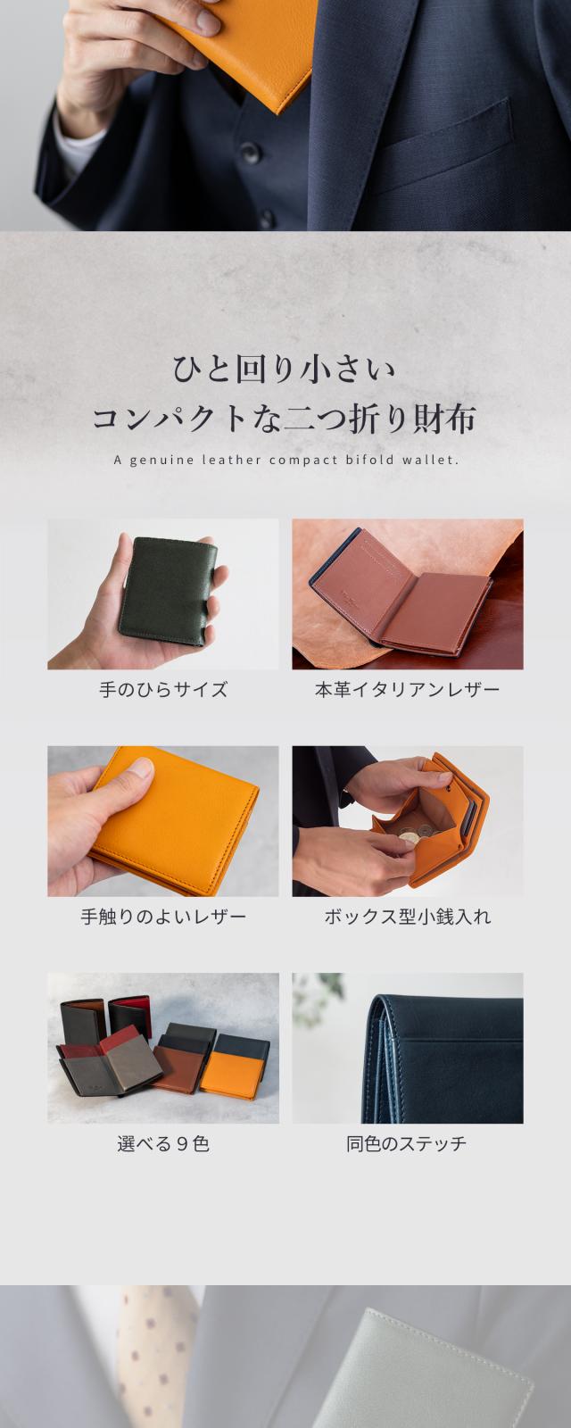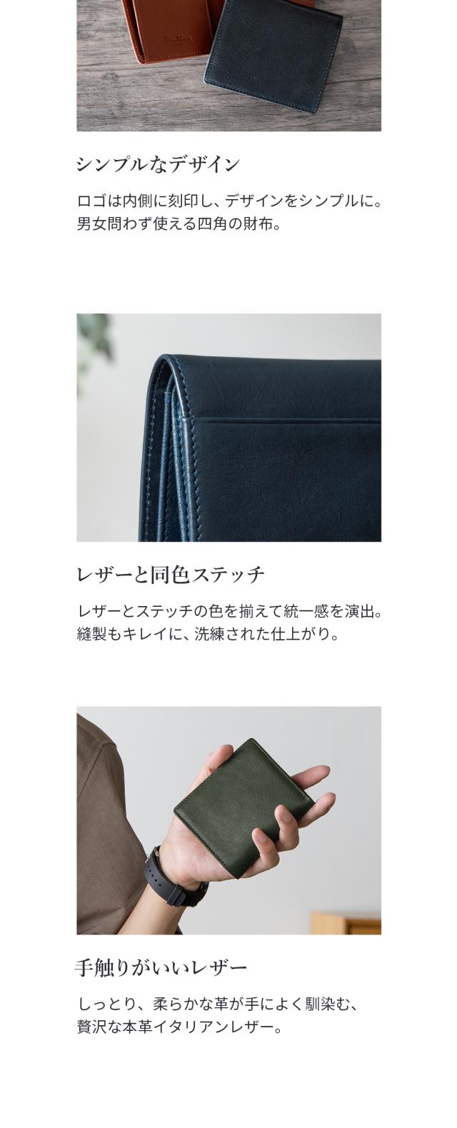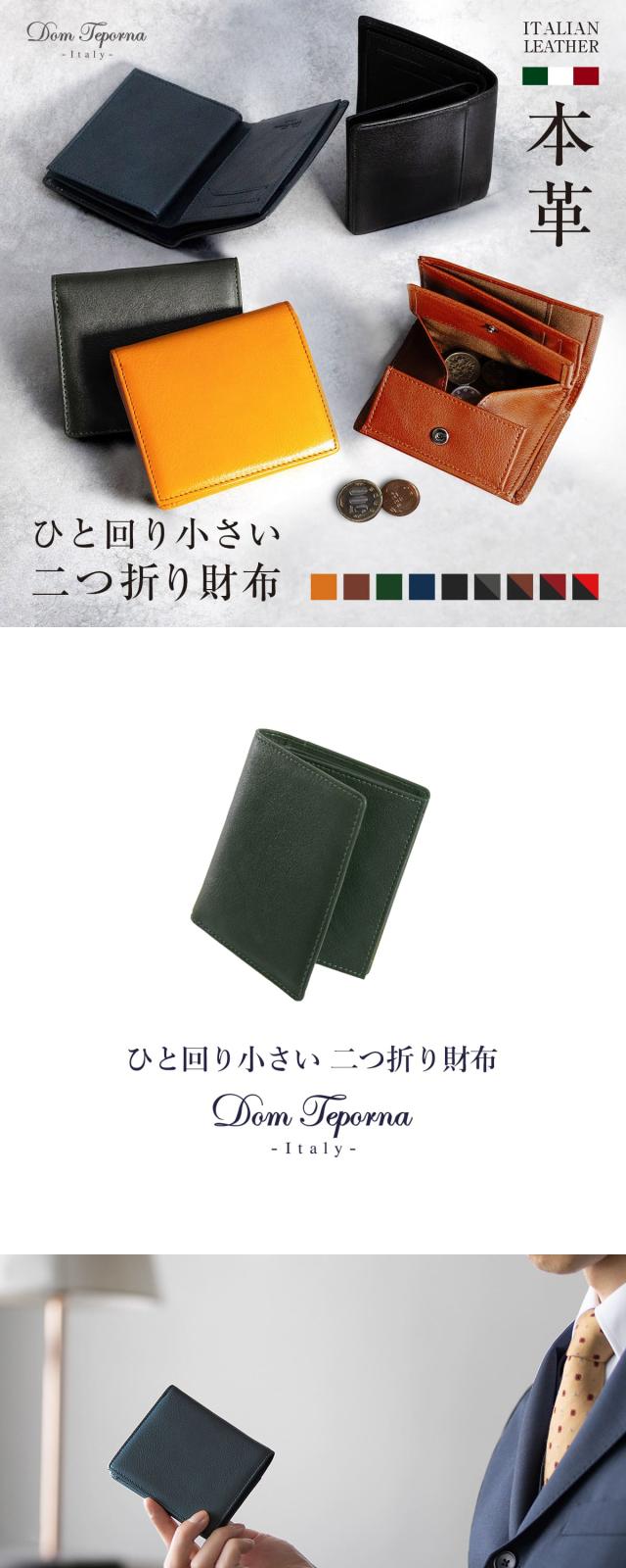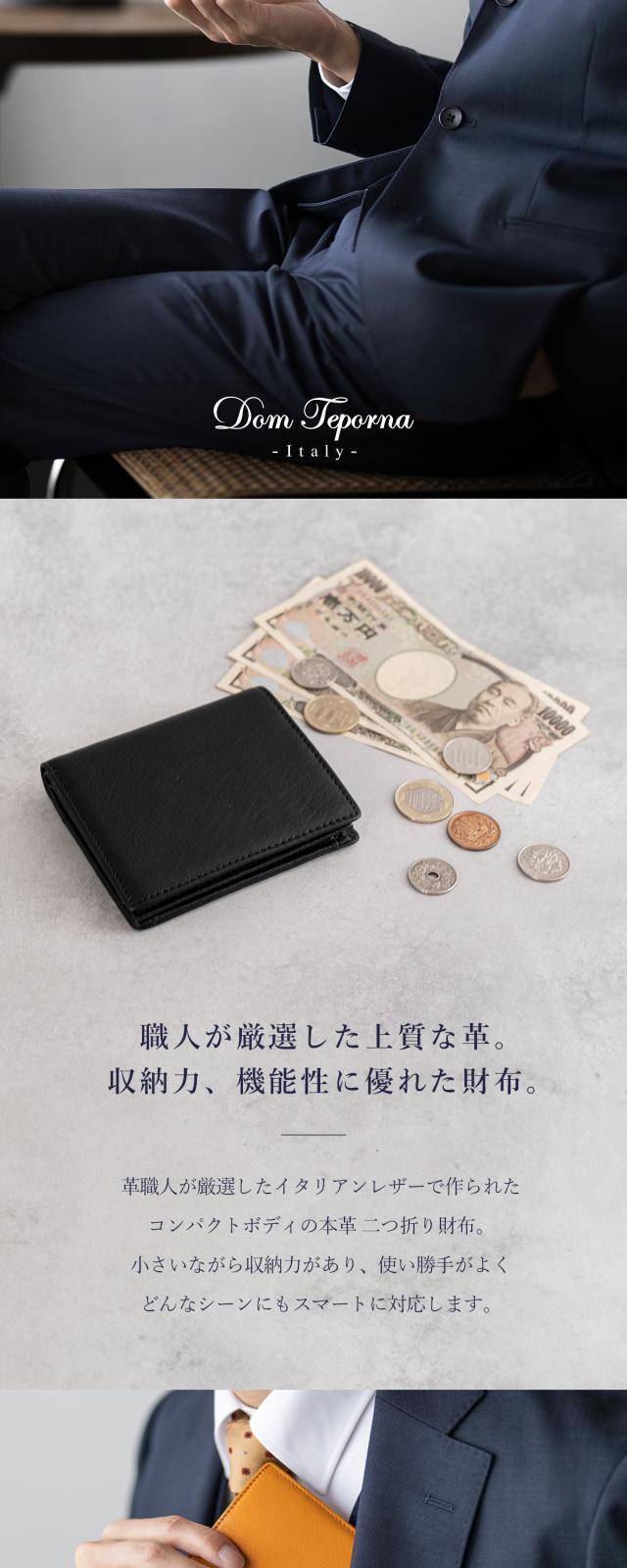 【限定1,500円OFF】【3,980円→2,480円】Dom Teporna Italy スリムな本革二つ折り財布 小銭が見やすいボックス型 イタリアンレザー 折りたたみ 牛革 薄型 薄い コンパクト ミニ 財布 軽い 軽量