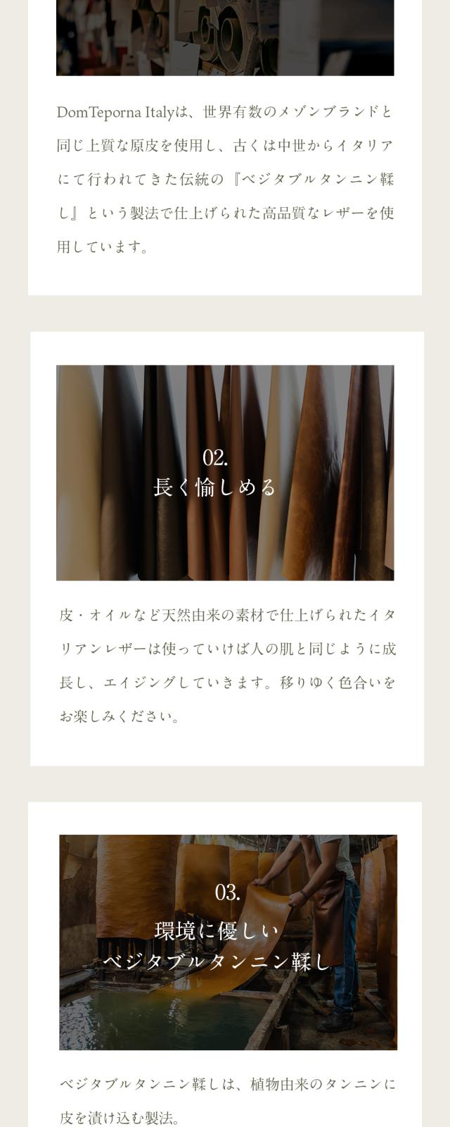 日本では栃木レザーがブランドレザーとして有名ですが、イタリアンレザーはブライドルレザーやコードバンと同様に世界三大高級レザーの一つとして愛されているイタリアの伝統的な製法です。