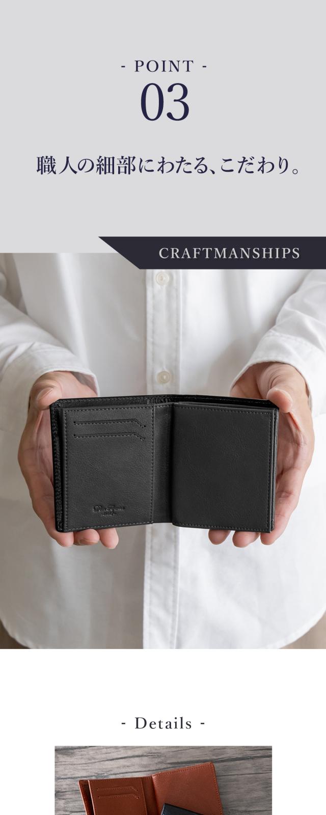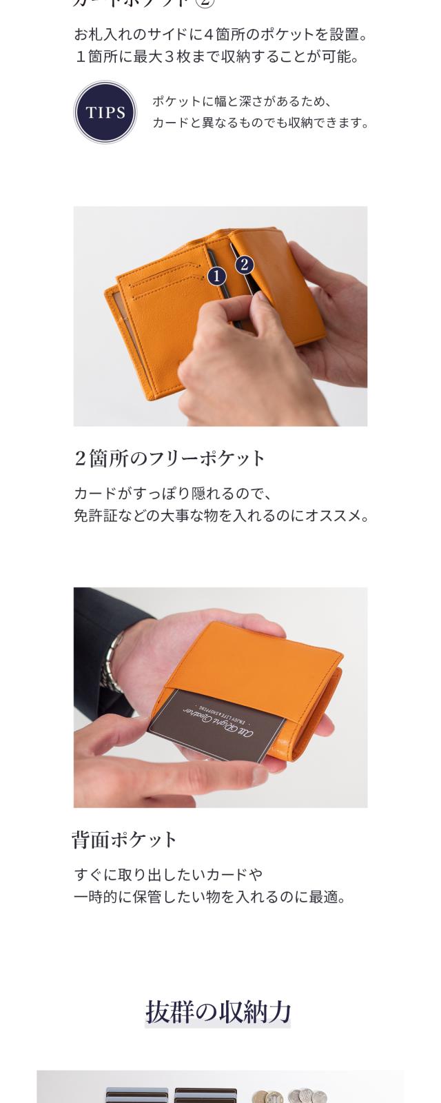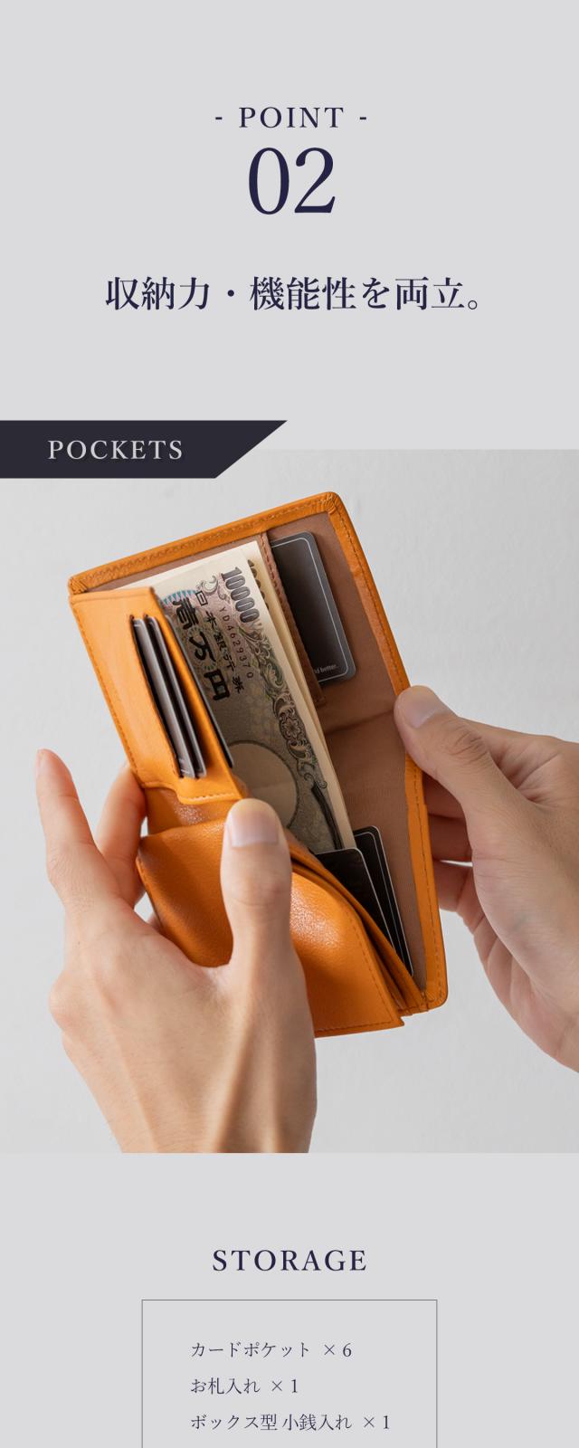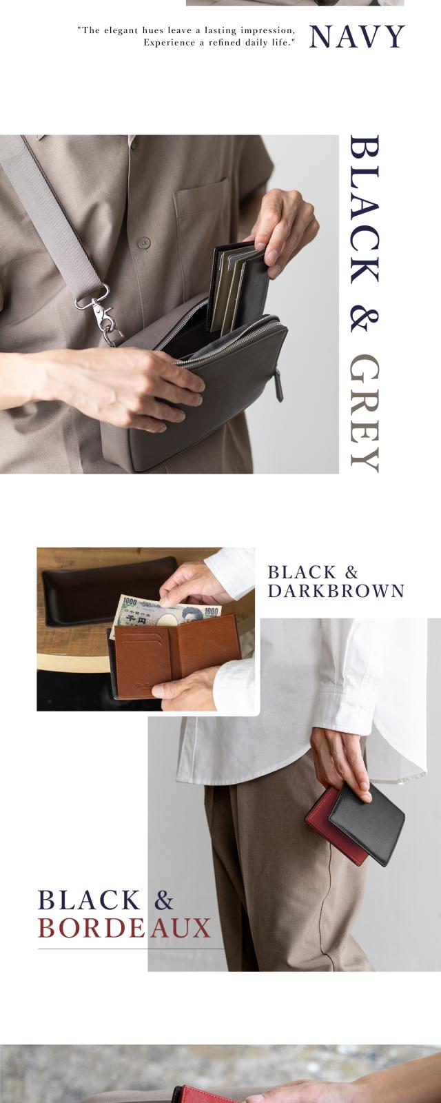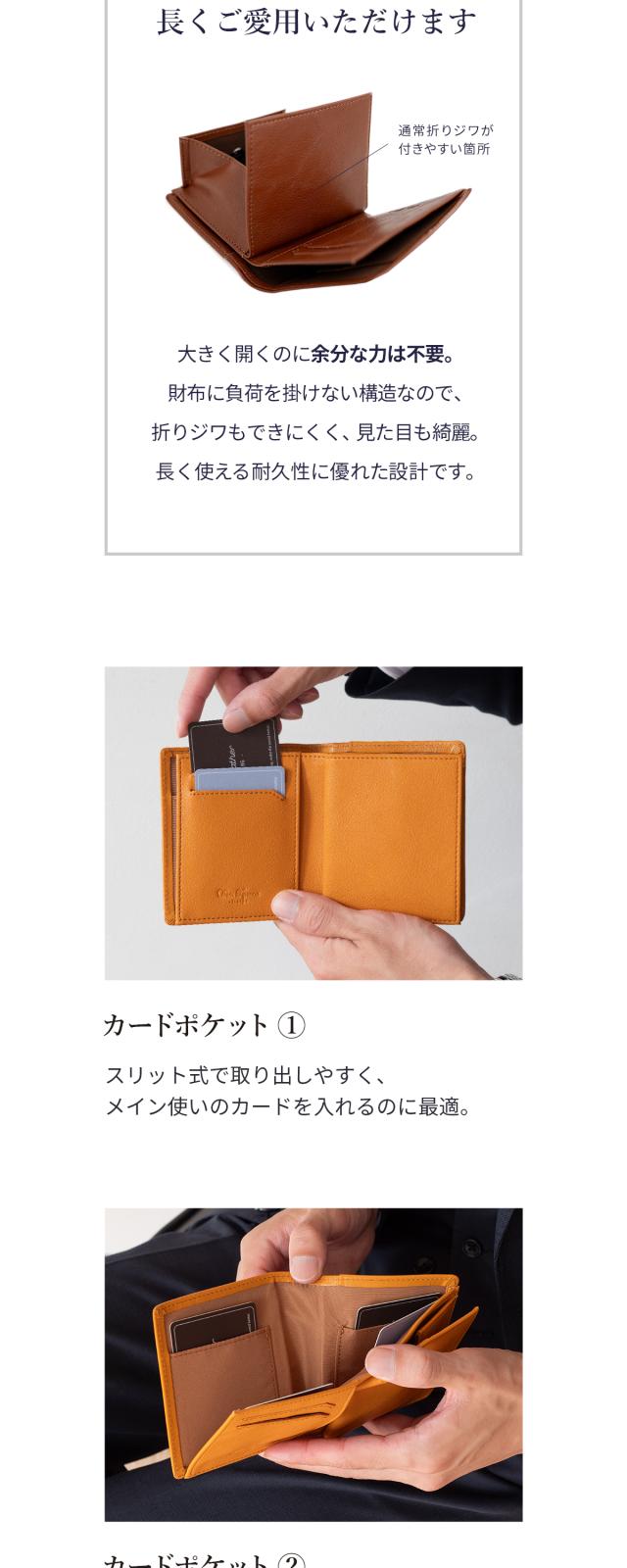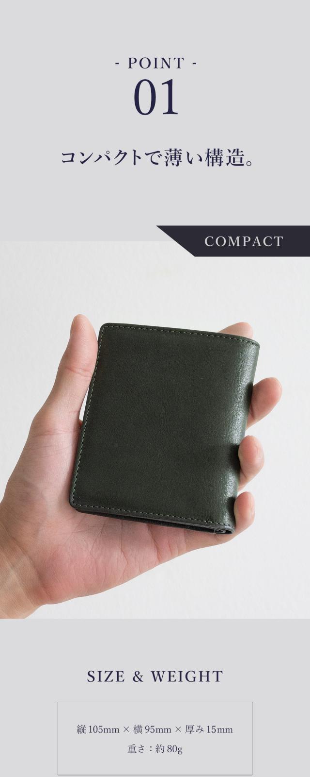一般的な二つ折り財布よりもひと回り小さいコンパクトボディに「充実の収納力」と「使い勝手の良さ」を兼ね備えた大人の財布。
