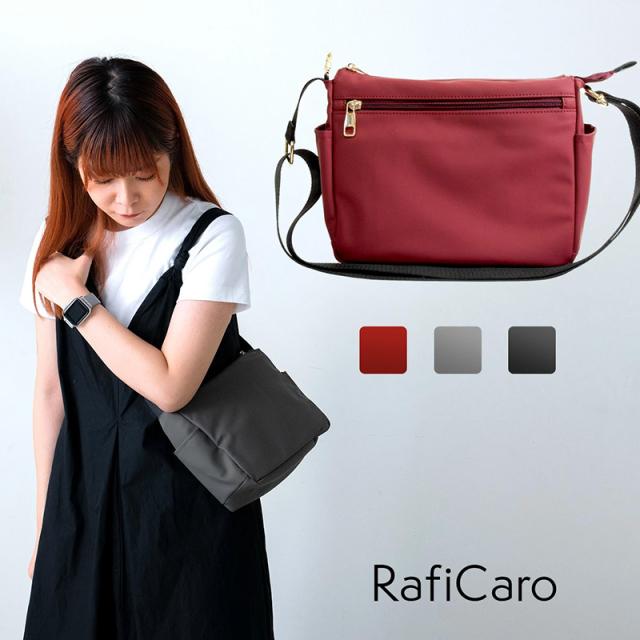 【限定500円OFFクーポン】【5,480円→4,980円】RafiCaro 軽量ナイロン製ショルダーバッグ 撥水 財布機能付き 底面ICカード ファスナーロック機能 ミニバッグ 斜めがけ 軽い 小さめ ポーチ コンパクト