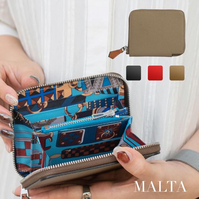 【限定200円OFFクーポン】【2,680円→2,480円】MALTA ミニ財布 牛革 小銭入れ ラウンドファスナー 小さい財布 コインケース コンパクト 薄型 軽量 大容量