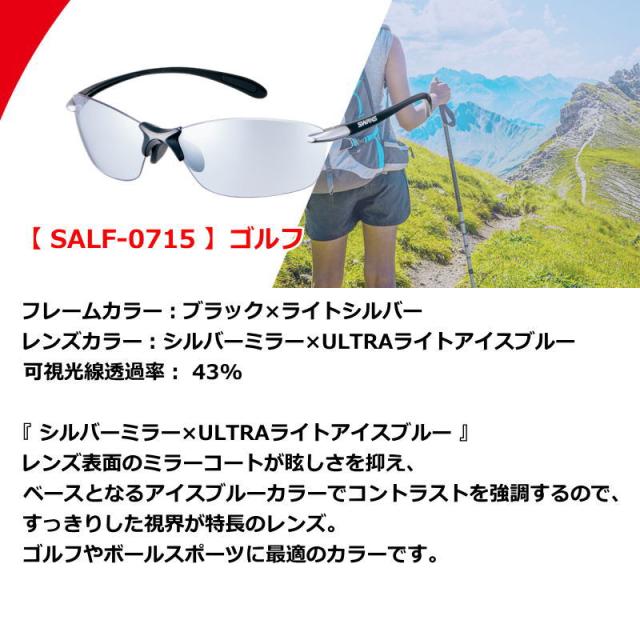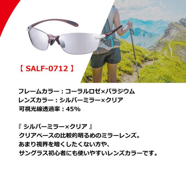 | 仕様・特徴 | 【 SALF-0712 】 フレームカラー:コーラルロゼ×パラジウム レンズカラー:シルバーミラー×クリア 可視光線透過率:45% 『 シルバーミラー×クリア 』 クリアベースの比較的明るめのミラーレンズ。 あまり視界を暗くしたくない方や、 サングラス初心者にも使いやすいレンズカラーです。 【 SALF-0715 】ゴルフ フレームカラー:ブラック×ライトシルバー レンズカラー:シルバーミラー×ULTRAライトアイスブルー 可視光線透過率: 43% 『 シルバーミラー×ULTRAライトアイスブルー 』 レンズ表面のミラーコートが眩しさを抑え、 ベースとなるアイスブルーカラーでコントラストを強調するので、 すっきりした視界が特長のレンズ。 ゴルフやボールスポーツに最適のカラーです。 ■Airless-Leaf fit エアレス・リーフフィット■ 徹底的に『 軽さ 』を追求した超軽量モデルで、 長時間かけていても負担を感じにくく、 軽い運動や日常生活で気軽に紫外線対策をしたい方にオススメ。 ゴルフや登山、マリンスポーツ、釣り、アウトドアやレジャーにも最適。 スポーツシーンはもちろん普段使いでもおすすめです。 |