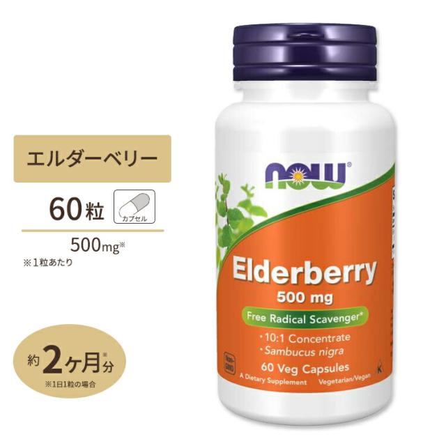 エルダーベリー 500mg 60粒 ベジタブルカプセル NOW Foods(ナウフーズ)