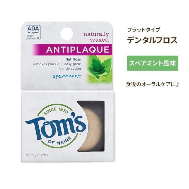 【お取り寄せ商品】トムズオブメイン ナチュラルワックス フラット フロス ミント味 30m Tom's of Maine Naturally Waxed Antiplaque Flat Dental Floss Spearmint