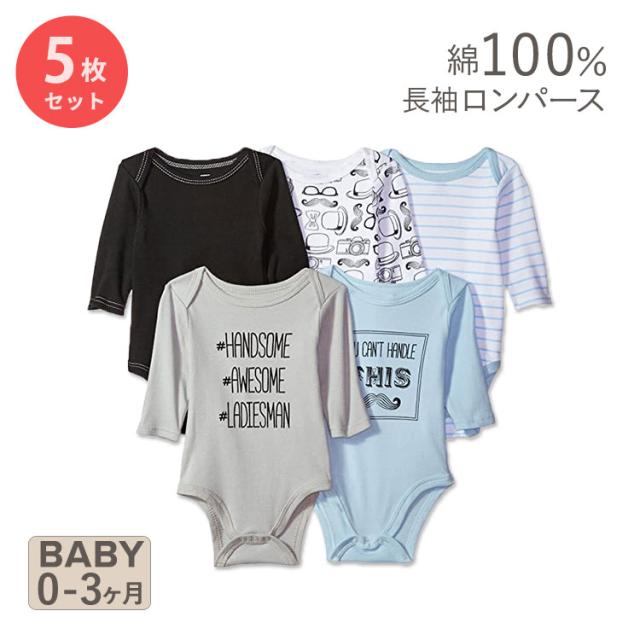 ハドソンベビー コットン ベビー服 ロンパース 長袖 5枚セット 口ひげ Hudson Baby Cotton Long-Sleeve Mustache こども服 男の子 夏 さわやか 水色