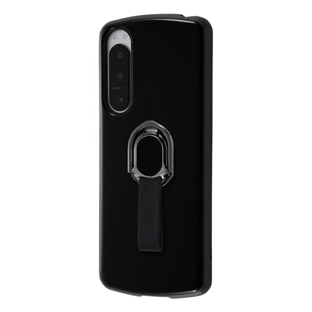 Xperia 5 IV ケース スマホリング付 ブラック スマホ カバー スマホリング ベルトリング 取り外し簡単 カメラ 傷付きにくい エアクッション 耐衝撃 頑丈 丈夫 ストラップホール 付 グリップ感 ハイブリッド ProCa TailRing