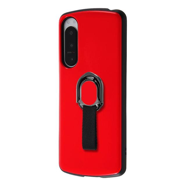 Xperia 5 IV ケース スマホリング付 レッド スマホ カバー スマホリング ベルトリング 取り外し簡単 カメラ 傷付きにくい エアクッション 耐衝撃 頑丈 丈夫 ストラップホール 付 グリップ感 ハイブリッド ProCa TailRing