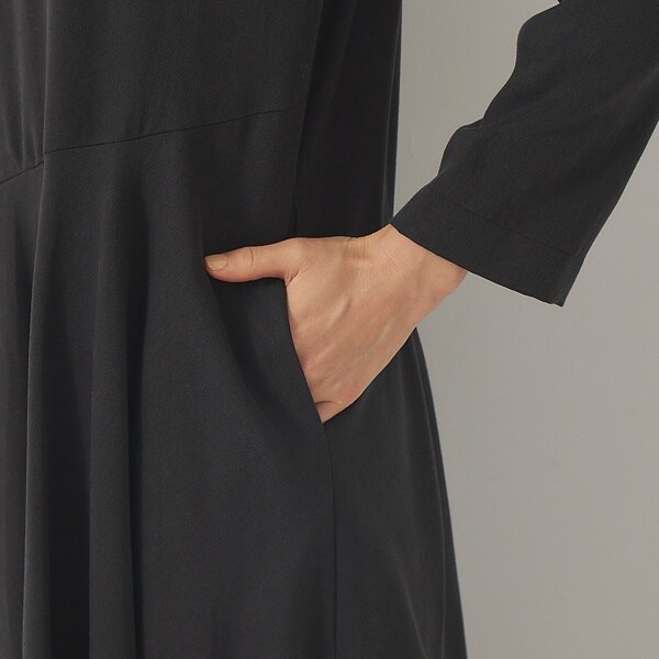 アシンメトリーの切り替えによって、ウエストマークが無くてもスタイルアップを叶えます。