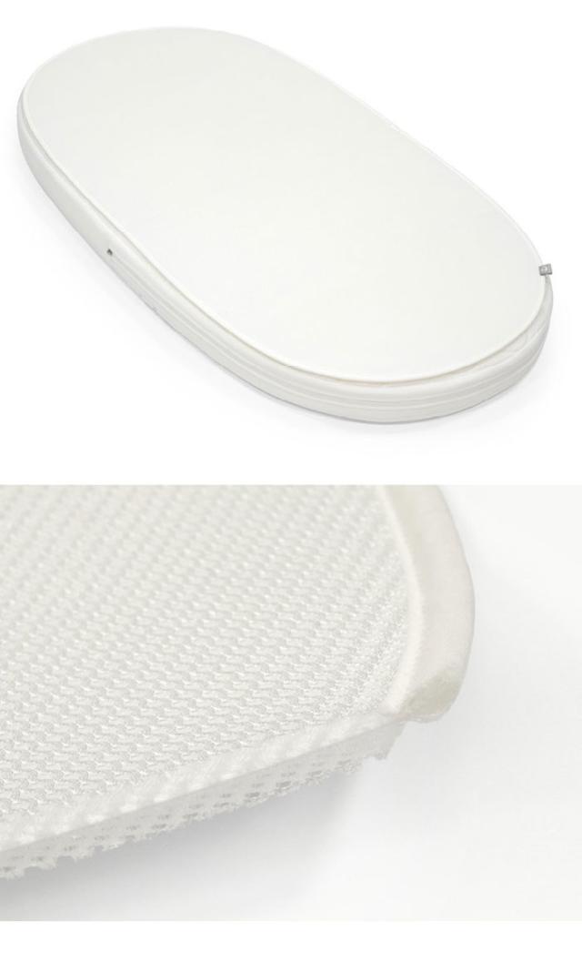 ストッケ スリーピーのまあるい形に合わせて作られた革新的な防水シートは、不意の汚れやおねしょからマットレスをが汚れることを防ぎます。防水加工が施されているため、水分がマットレスに吸収されるのを防ぎながら、常に赤ちゃんの安眠のための清潔な寝床を保ちます。3Dメッシュ素材で通気性も良く、洗濯機で丸洗いできます。