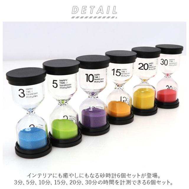 砂時計 通販 アクリル 6個セット 6個 セット タイマー時計 キッチンタイマー 砂 タイマー 時計 キッチン おしゃれ カラフル 時間管理 学習 料理 子供 家庭 オフィス ギフト