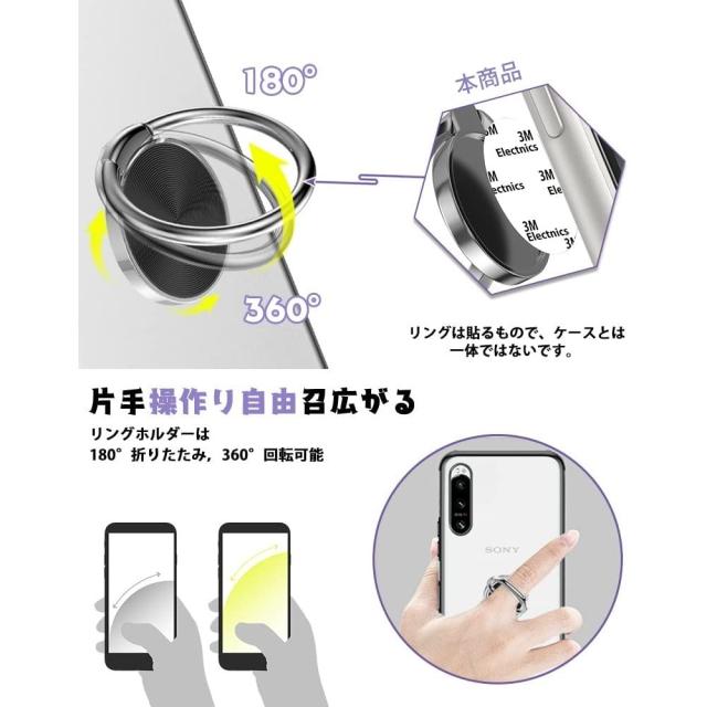 ケースを横置きにするとリングがスタンド機能になり、持たずに長時間の動画鑑賞などを楽しむことができます。また、持ち運ぶ際にリングに指を通すことで落下防止や片手操作に役立ちます。