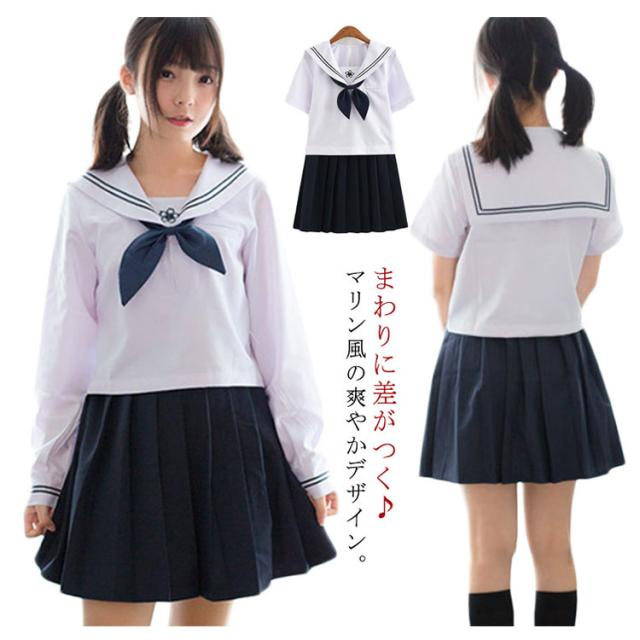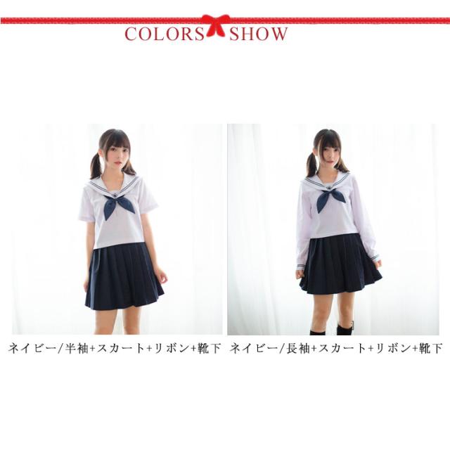 女子制服 JK制服 4点セット 上下セット セーラー服 レディース セーラー襟 学生服 高校生 コスプレ コスチューム 選べる2セット ネイビー