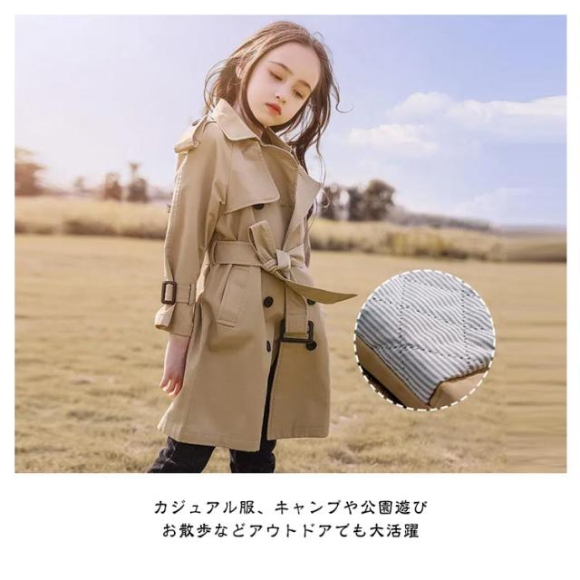 | 高級感と可愛らしさが漂う、英国風トレンチコート! コーデも楽ちんな、キッズ用おしゃれコート。秋口から春までご利用いただけます。 発表会やパーティなどのフォーマルな場面はもちろん、カジュアルに着こなしてもOK! カジュアル服、キャンプや公園遊び、お散歩などアウトドアでも大活躍。 | |