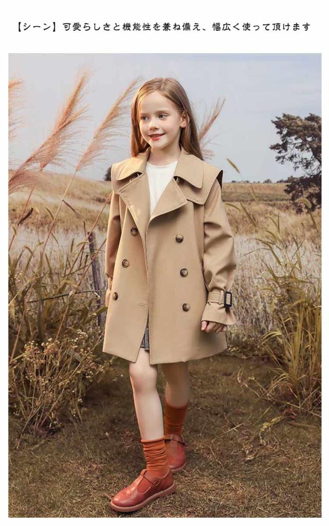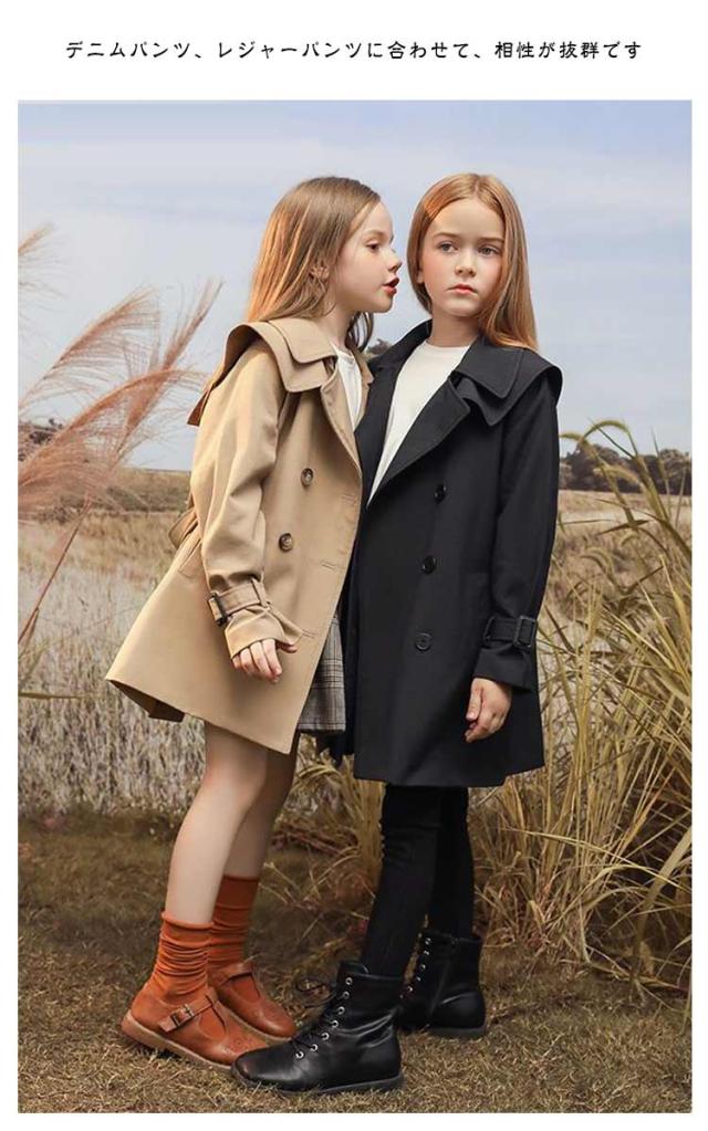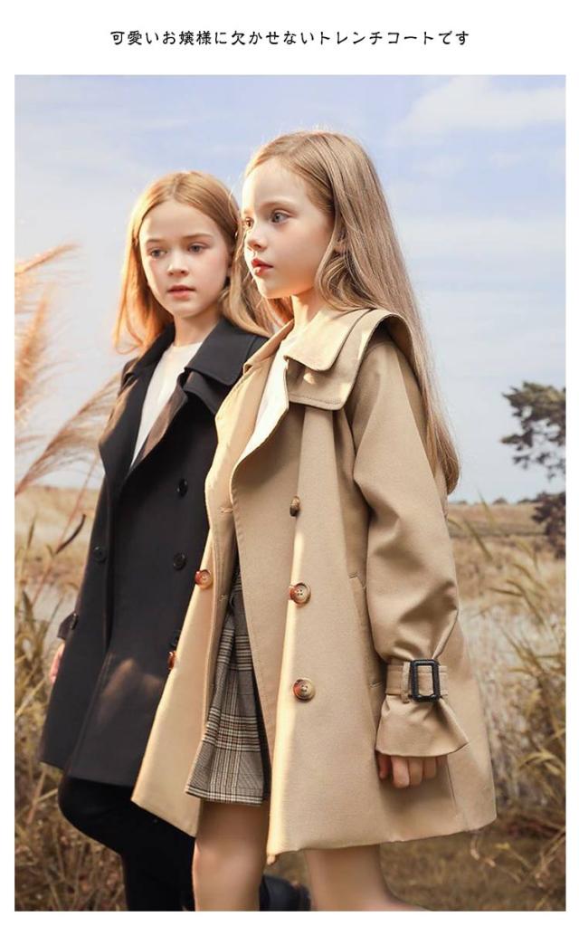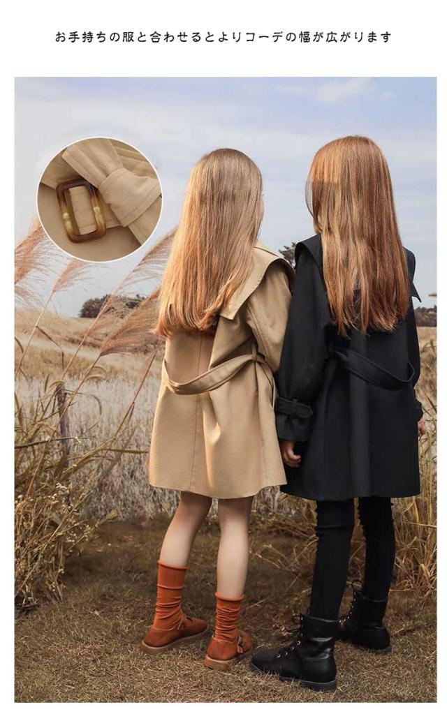 トレンチコート 140 春秋 ロングコート 子供 チェスターコート キッズ スプリングコート 女の子 春 秋 冬 子供服 アウター 子ども ガールズ ジュニア きれいめ おしゃれ 可愛い かわいい カジュアル フォーマル ベージュ 黒 卒業式 送料無料
