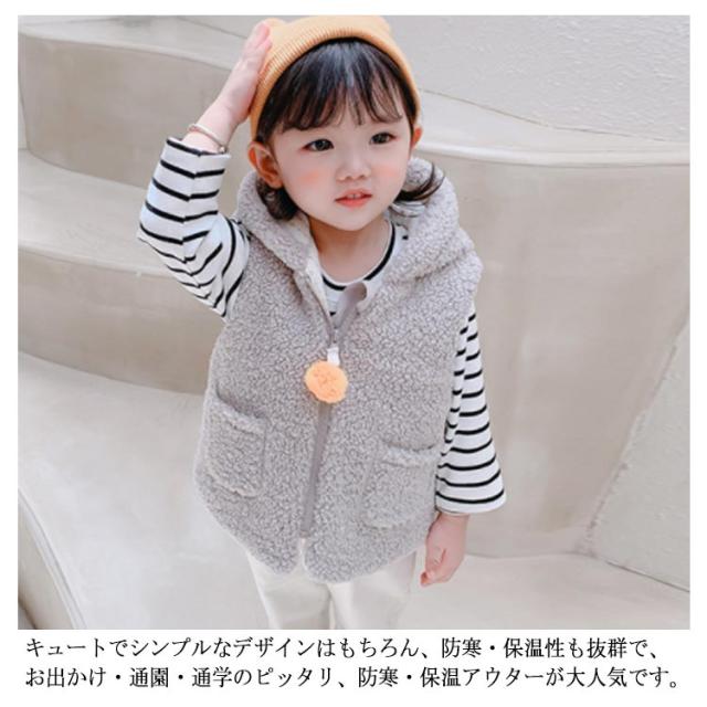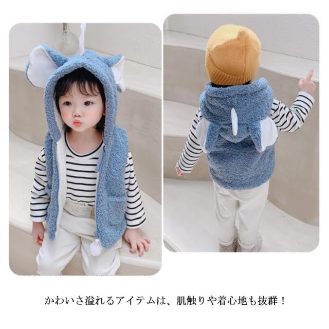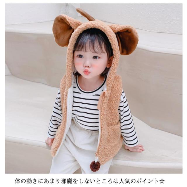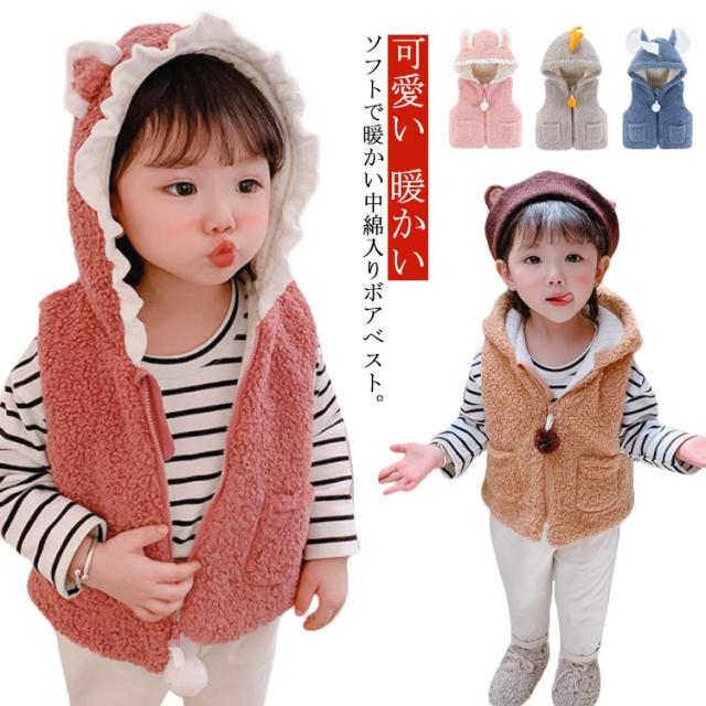 子供 ボア ベスト 赤ちゃん ベビー 女の子 男の子 中綿ジャケット ノースリーブ キッズ ジュニア ベビー服 耳 フード付き パーカー ジレ ジップアップ 秋冬 暖かい 新生児 可愛い もこもこ 男女兼用 部屋着 ルームウェア 出産祝い ギフト プレゼント 春 秋 冬 送料無料