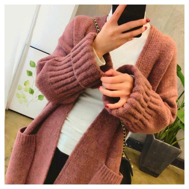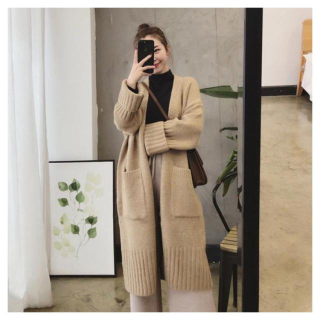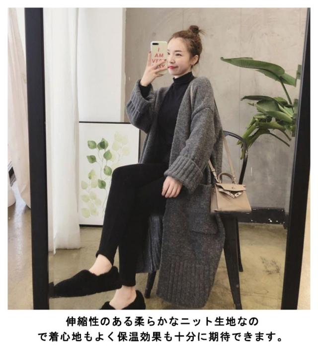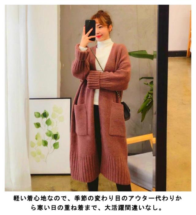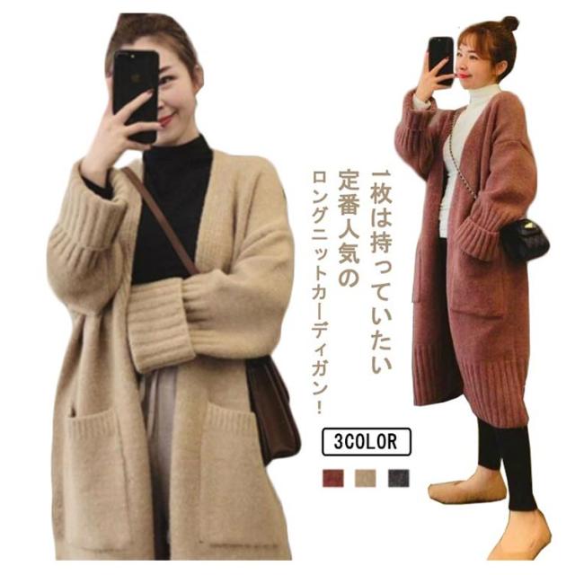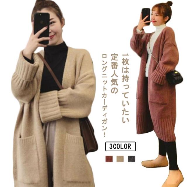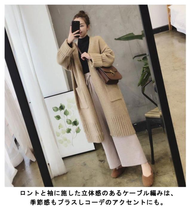 ニットカーディガン レディース ロング丈 カーディガン 羽織り ポケットあり 秋冬 トップス ゲーブル編み セーター 前開き 厚手 無地 暖かい ロングアウター シンプル コート カジュアル 体型カバー 可愛い 防寒対策