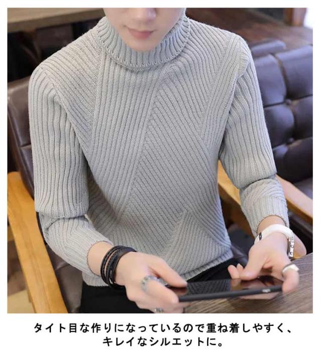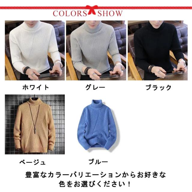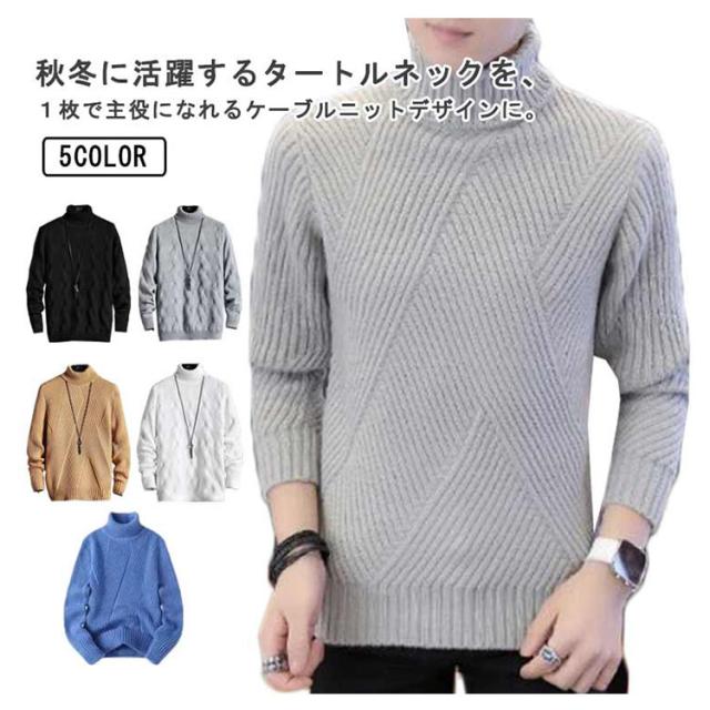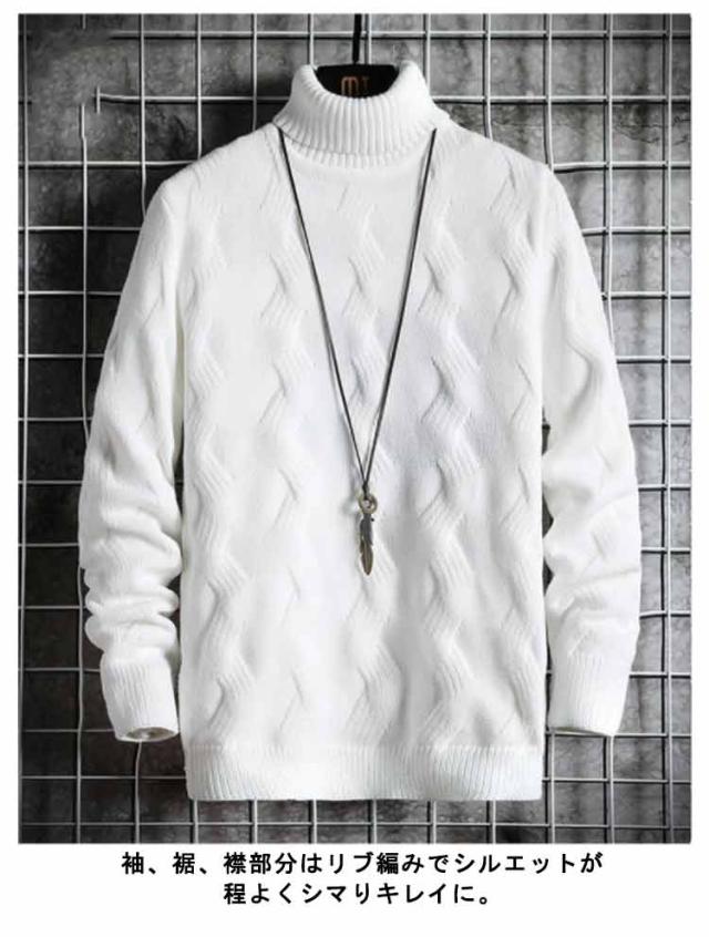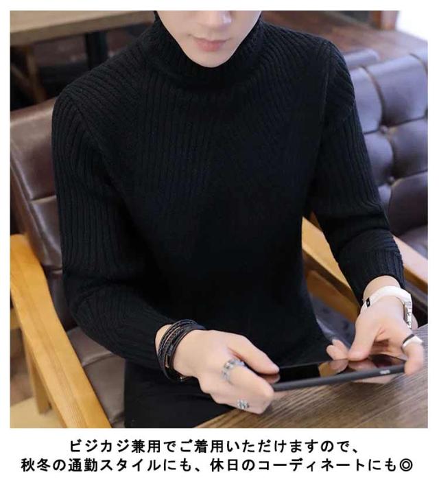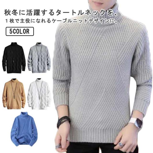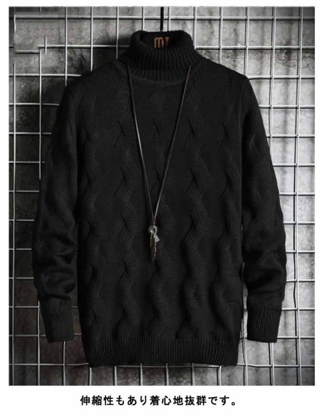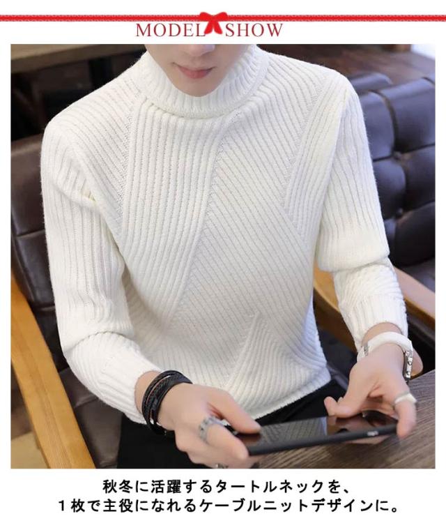 ニット セーター ハイネック ケーブル編み メンズ 細身 インナー ニット 秋服 冬服 セーター トップス タートルネック スリム フィット あたっか 通勤 通学 学生 大人 男子 オフィス カジュアル 黒 白 【送料無料】