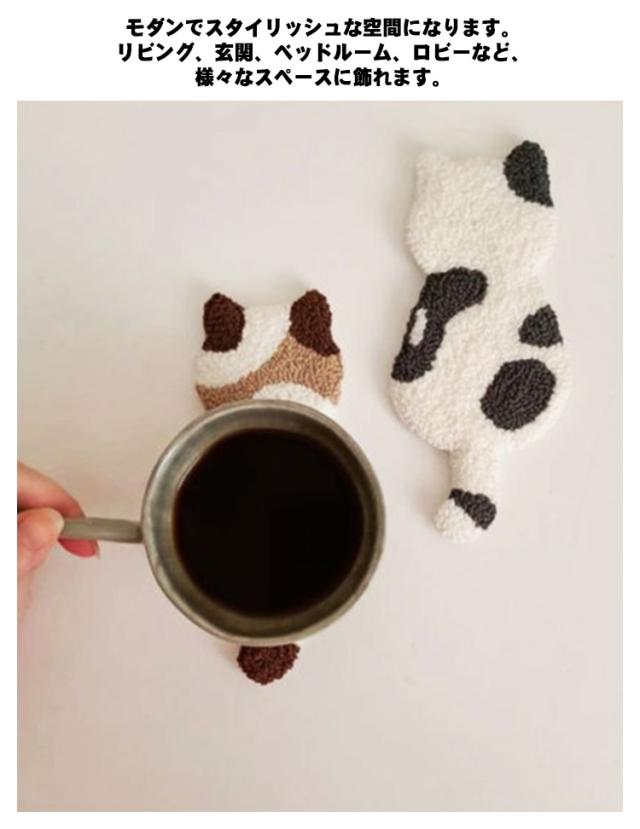 送料無料 パンチニードル 材料道具キット 猫型 コースター材料キット ニードルパンチ 刺繍 手芸材料セット DIY 手作りコースターキット 刺繍枠 ニードルペン 図案 布セット 中級者向け 毛糸 インテリア小物 デザイン 中級者 かわいい ロシアン刺繍 パンチニードルペン付き