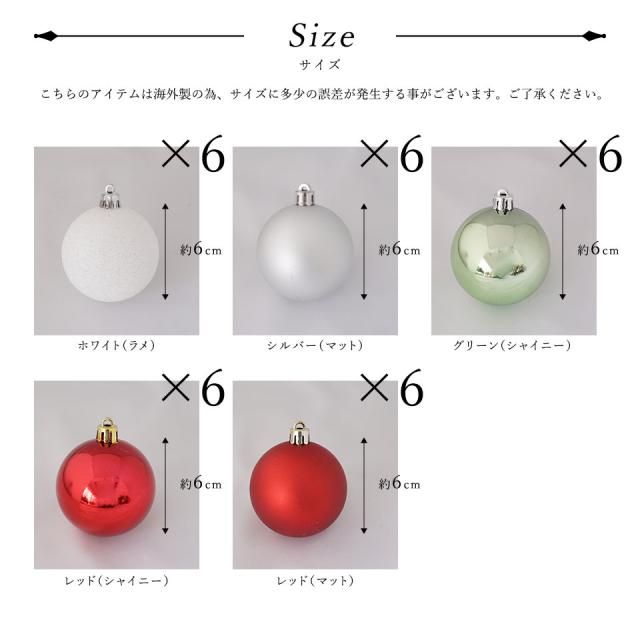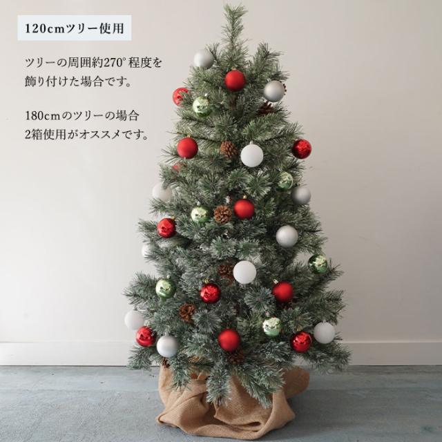 ★「クリスマスツリーをおしゃれに飾り付けたいけど、どんなオーナメントを選んだら良いのか分からない…!」 そんな方へおすすめなのがこちらのミックスオーナメント。バランスの取れた配色でクリスマスツリーをシックに彩ります。 ニュアンスの異なる4色のボールオーナメントがセットになった合計30個のオーナメントアソートです。 同系色がセットになっているのでツリーに一体感がうまれ、誰でも簡単にセンスの良いデコレーションが完成します。 お手軽に華やかでおしゃれなツリーに仕上げてくれる人気アイテムです。 定番ともいえるクリスマスカラーはパーティーシーンにもぴったり。カジュアルなものから高級感のあるものまで、様々なテイストのツリーに組み合わせやすいオーナメントです。 |